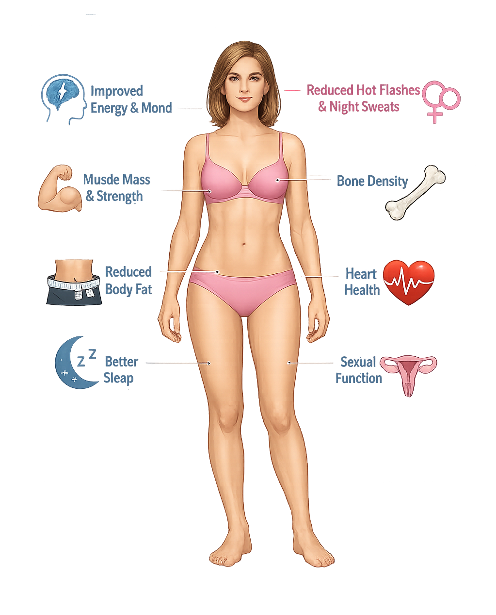 Potential benefits of bioidentical hormone replacement therapy (BHRT) include: